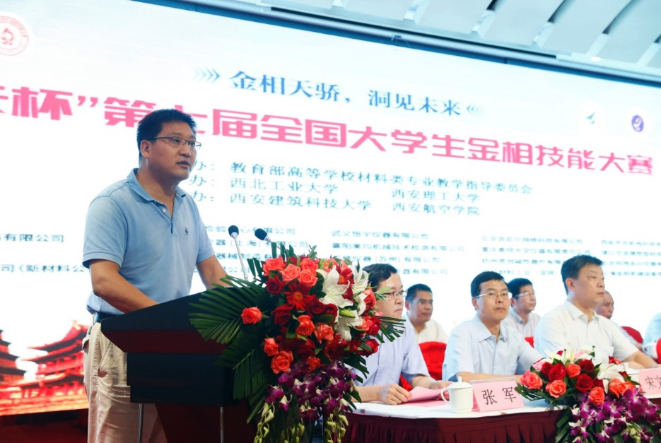 开幕式上,西北工业大学副校长万小朋代表大赛承办高校致辞,对参赛高校师生表示热烈欢迎,他讲到,全国大学生金相技能大赛是材料冶金类专业规格最高的赛事之一,“以赛促教、以赛促改、以赛促学”的理念深入人心,极大地推动了材料学科高素质创新人才的培养。随后,万小朋介绍了此次赛事的筹备情况,表示将继续全力以赴做好服务保障工作,努力把本届赛事办成特色鲜明、影响深远的盛会。