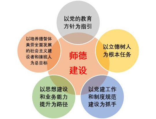 师德考核办法》等规章制度20余个,建立了完备的制度体系,进一步规范了教育教学及行政管理工作。在教师党支部增设纪检委员监督日常言行,畅通学生、家长、网络平台等问题反馈渠道,严格执行师德师风问题“一票否决制”。多措并举提升教师业务能力,组织实施“教师结对帮扶”“教学工作坊”“盯课盯岗盯科研”“课程思政大练兵”等活动,用“学高为师、身正为范”激励广大教师。