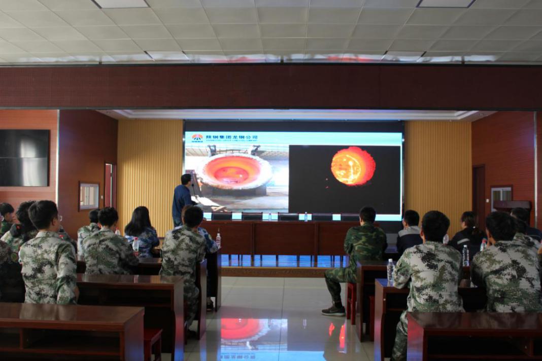 最后来到陕钢集团龙钢公司炼钢新区会议室,炼钢厂副厂长习晓峰、技术员刘海龙工程师就龙钢炼钢厂的发展、炼钢流程、个人发展和企业人才需求等方面与研学人员进行了交流。