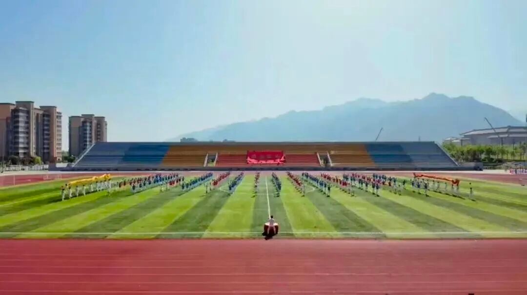 展演进入尾声,后排学子整齐列队,组成醒目的XAUAT字样;前排同学身姿挺拔,共同勾勒出数字“130”,致敬母校百三十载办学征程。场后“冶金雄风”大旗庄严展开,两条巨龙在场地中央盘旋环绕,呈现出“70”造型,为母校七十周年校庆献上真挚祝福。