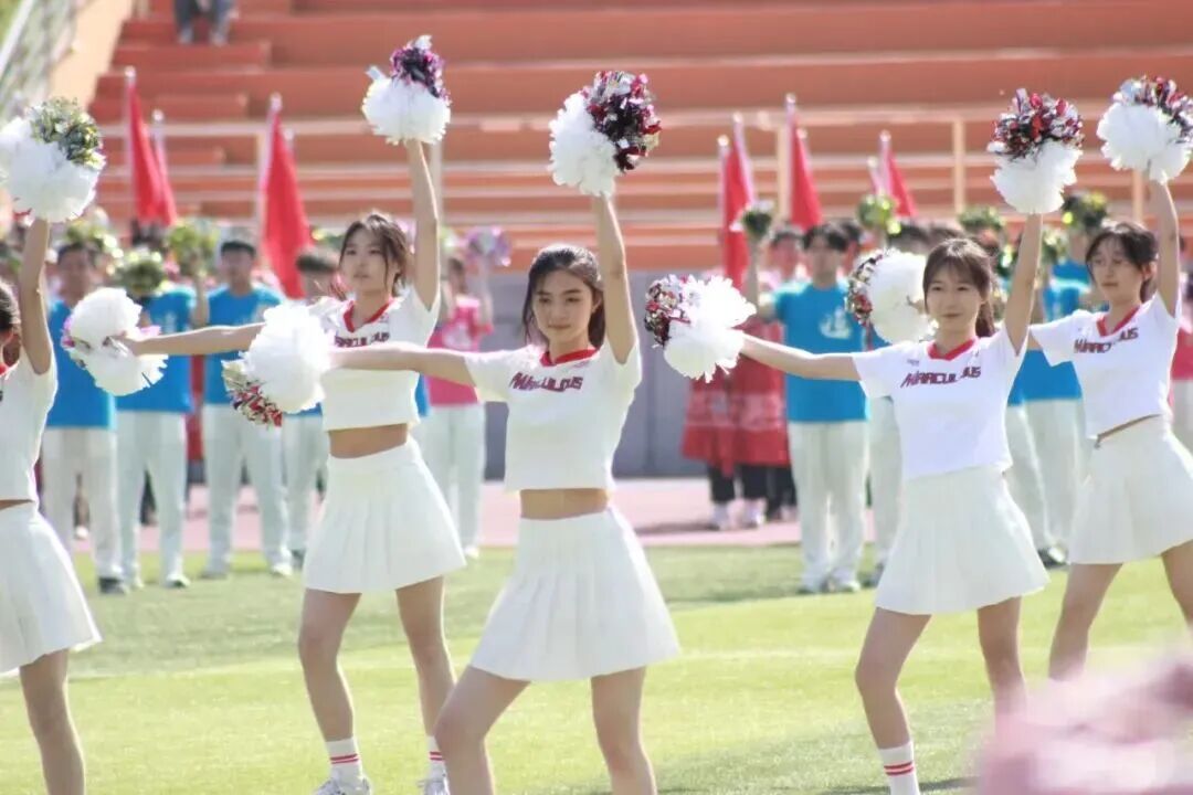 拱门造型定格,十五位女同学携啦啦操solo活力登场。她们踏着明快节拍闪亮亮相,身姿矫健昂扬,动作干脆利落、舒展有力,以热情洋溢的舞姿点燃全场氛围。