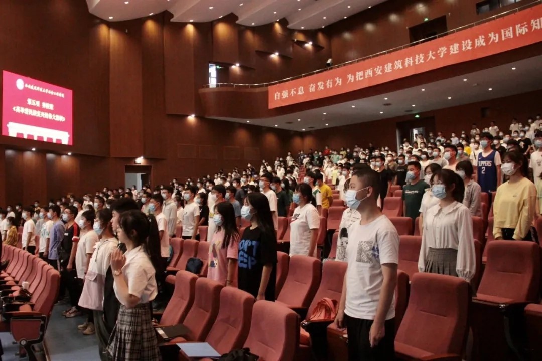在紫阁大礼堂召开2021级本科生年级大会,本次大会由2021级本科生辅导员乔柯和陈善勇主持召开。乔老师分别从校园安全、大学学习、自我要求、活动制度四个方面展开,以往届学长学姐为例,劝诫新生们要珍惜美好的大学时光,志存高远,踏实学习。