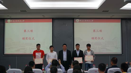党委书记马立建老师、91级校友代表曾建新、苗红生学长为获奖学生颁奖。