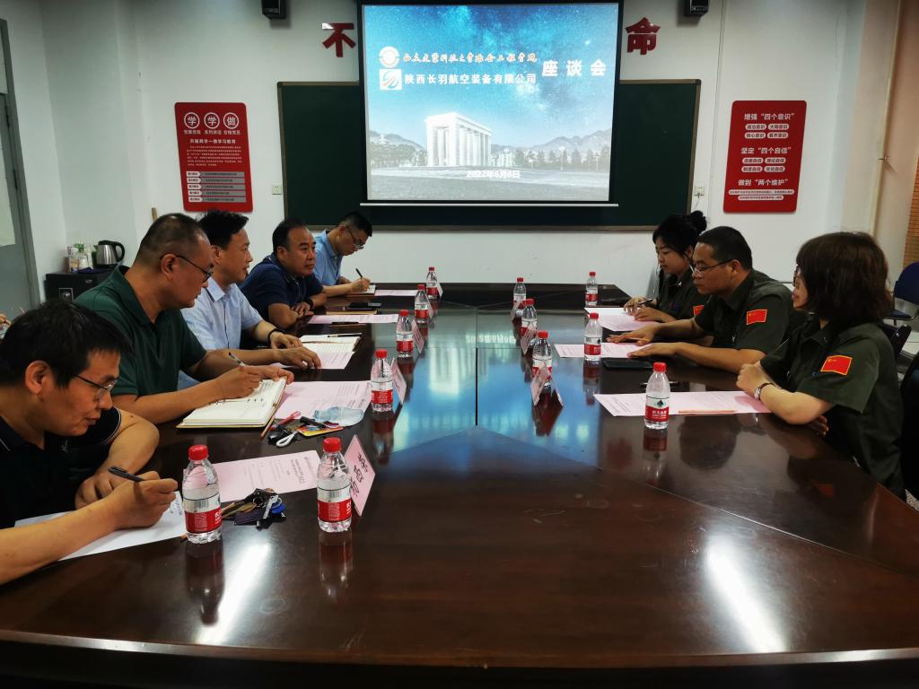 6月8日下午,陕西长羽航空装备有限公司总经理王世超、陕西长羽长翎企业管理咨询有限公司总经理张艳、陕西长羽长翎企业管理咨询有限公司招聘经理胡娜一行3人来院走访交流,学院党委书记马立建,院长李林波,党委副书记、副院长张佩,副院长李小明、杨西荣出席座谈会,教师代表,毕业年级辅导员,实验室、学工办、院团委等负责人参加了座谈会,会议由学院党委副书记、副院长张佩主持。