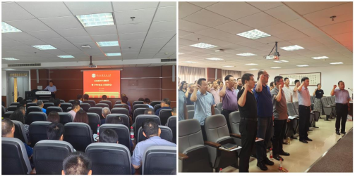由院长李林波领誓,全体参会教师以《新时代教师职业行为十项准则》为内容进行宣誓,增强教师教书育人责任感、使命感和荣誉感。副书记、副院长张佩领学了师德师风典型案例,通过警示教育引导教师以德立身,恪守师德底线。
