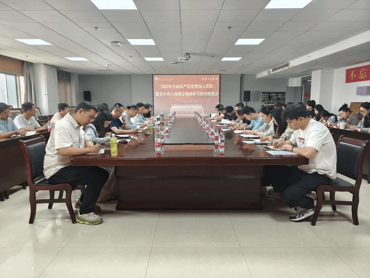 在工科大楼1106会议室召开2025年全面从严治党暨开展深入贯彻中央八项规定精神学习教育推进会。学院领导班子成员、党委委员、纪委委员、院长助理、系主任、各党支部书记及支委成员参加会议。会议由学院党委书记马立建主持。