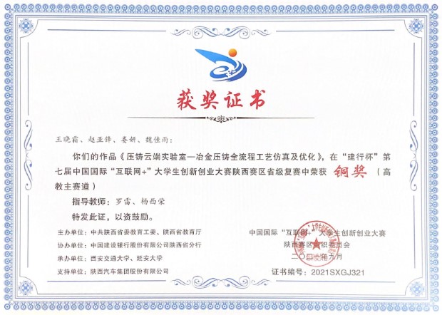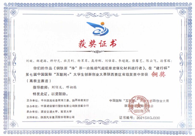在第七届中国“互联网+”大学生创新创业大赛中,冶金师生锐意进取、首重创新,在校赛中获得5金2银的优异成绩;在省赛中,获得2金1银3铜;在国赛中,获得1银。获奖数量和质量位居全校第一,再次刷新我院在“互联网+”大学生创新创业教育中的最好成绩。其中由胡平、王快社教授指导,李世磊、华兴江、陈波等同学完成的“国创优钼——自主新型高强韧钼合金”项目获总决赛高教主赛道银奖。