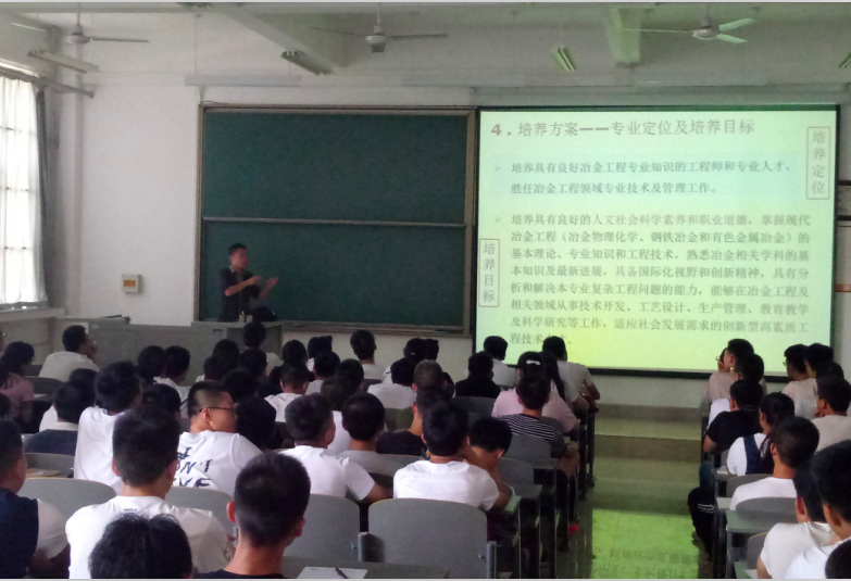 为帮助2017级新生尽快了解专业发展,完成个人学业的设计,9月6日,av淘宝 教学办组织了2017级新生的专业介绍活动,邀请化工教研室主任张秋利、材成教研室主任王强、金属教研室主任胡平、冶金教研室主任施瑞盟四位老师赴草堂校区,为同学们进行了精彩的宣讲。