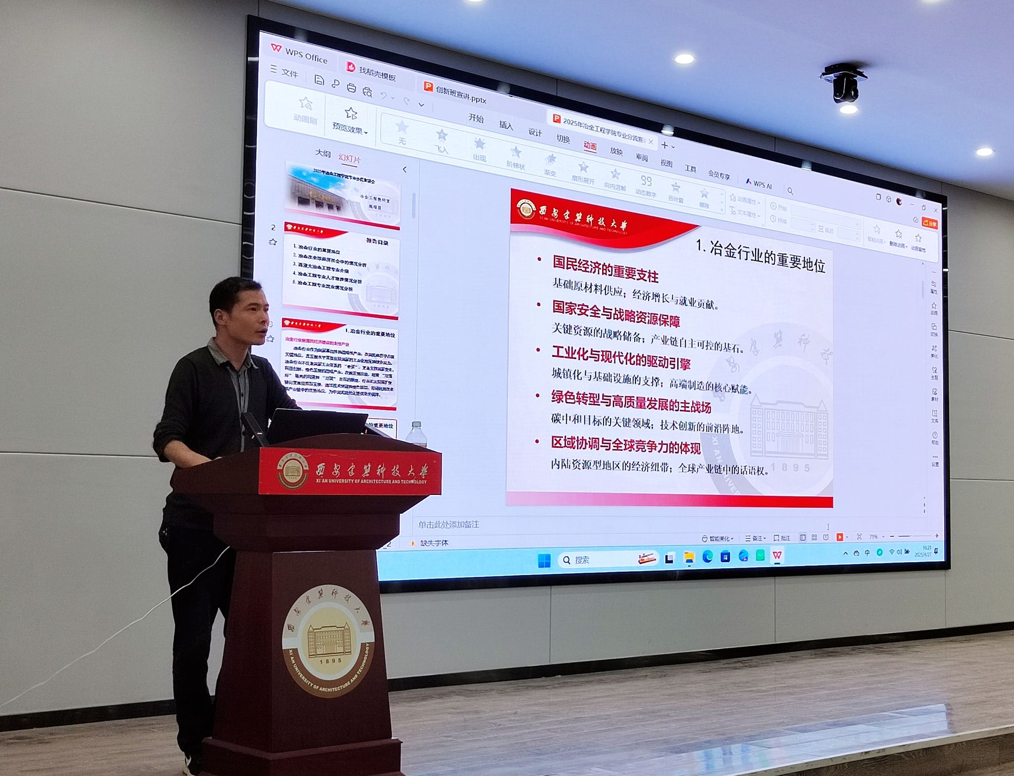 在冶金工程专业的宣讲环节,教研室主任施瑞盟细致入微地向学生们阐述了冶金行业的发展现状及其在国民经济中的核心地位。为了让学生更直观地感受国内冶金技术的尖端水平,施老师精心挑选并播放了相关视频资料,极大地激发了学生们投身冶金事业、为国家建设贡献力量的热情。