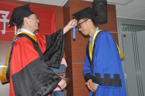 随后,党委副书记、副院长李林波宣读了学位授予文件,76位硕士毕业生被授予硕士学位。学院学位评定委员会主席、副院长赵俊学依次为76位硕士毕业生颁发证书、拨正流苏并合影留念。