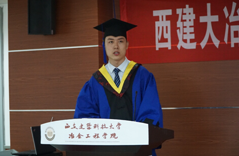 郝亚鑫代表全体毕业硕士生发表了毕业感言,表达了她对母校、恩师以及所有老师的感恩之情,他号召全体毕业生们用自己的实际行动诠释自强、笃实、求源、创新的校训精神,不辱av淘宝 钢铁般意志的称号。并祝学院蓬勃发展、蒸蒸日上,取得更大的成就!