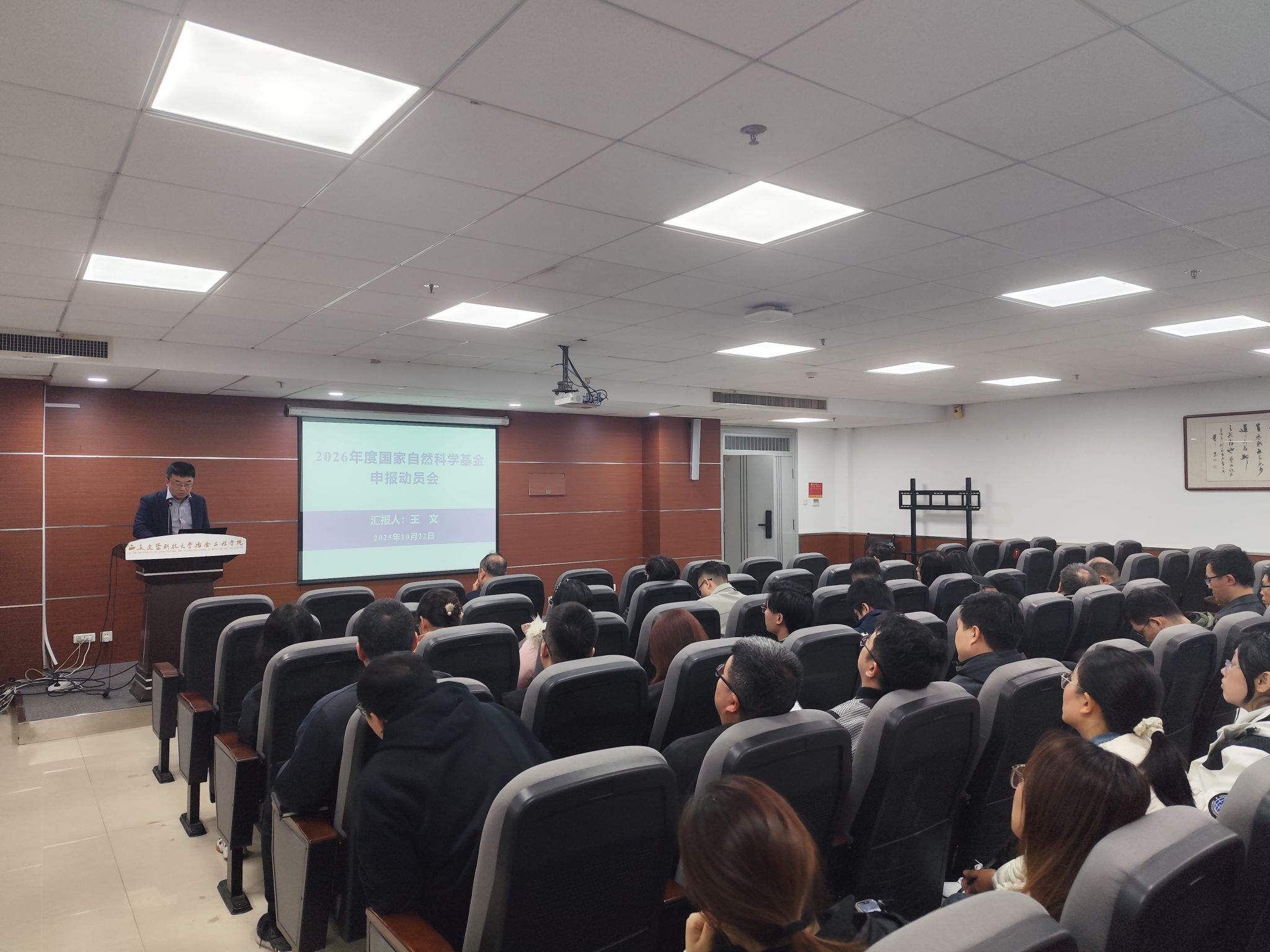 在工科楼1111会议室召开2026年国家自然科学基金申报动员会。科研院处长瞿伟莅临指导,全体教师及实验室人员参加会议。会议由学院科研副院长王文主持。