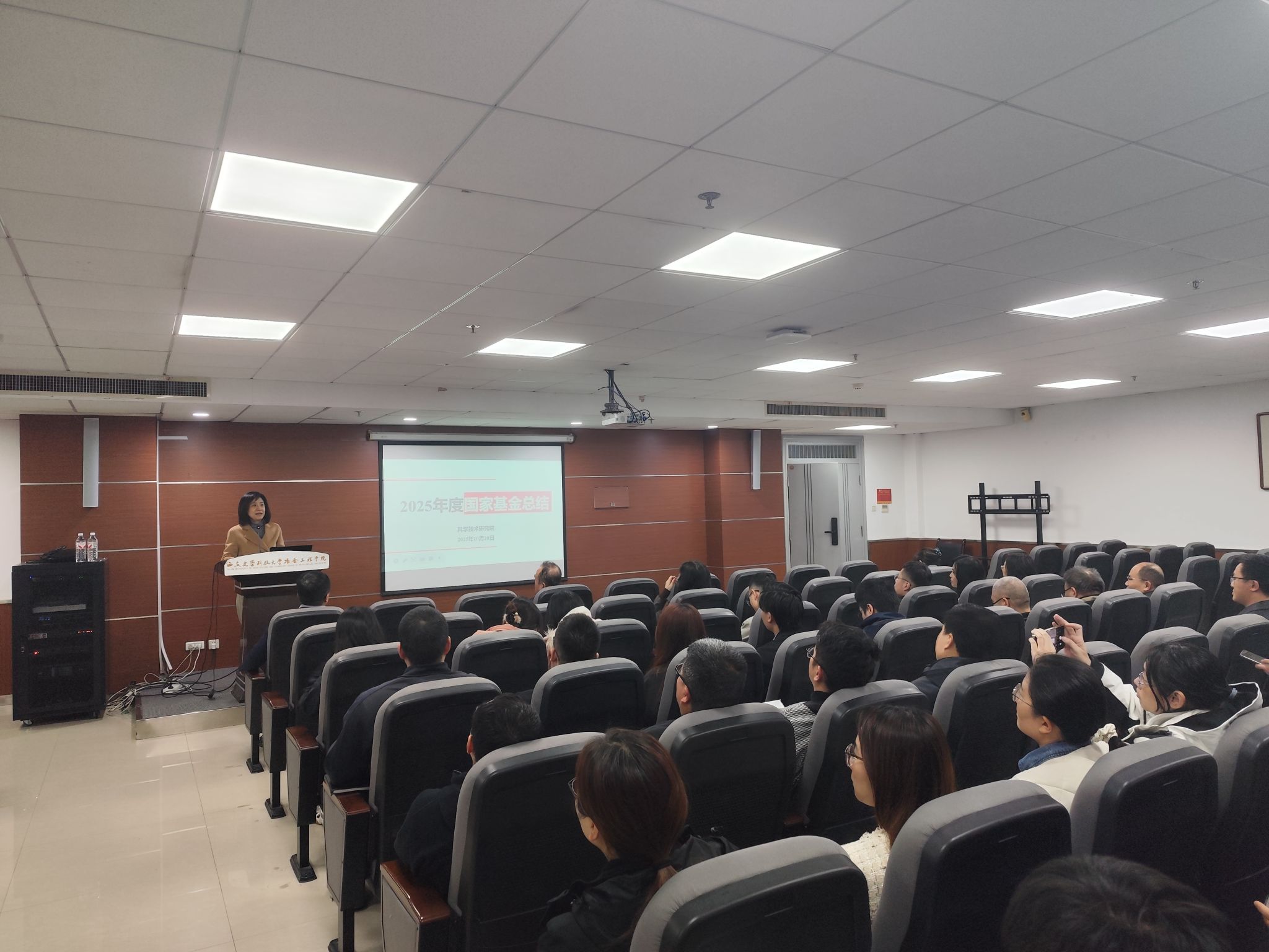 王文副院长总结了2025年国基金的申报和获准情况、分析了学院基金申报中存在的问题,并针对性提出了建议和申报要求。