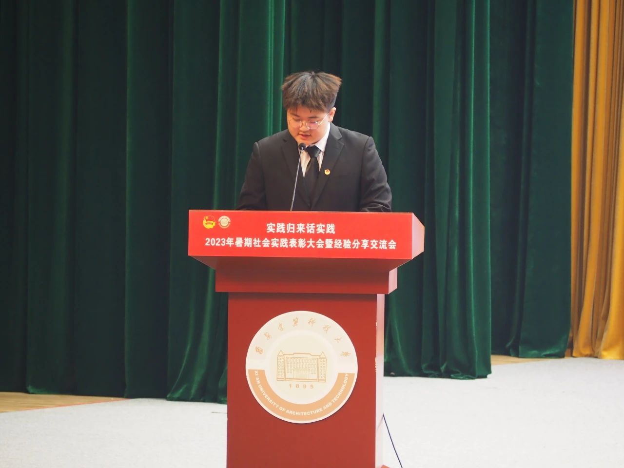 金属2202班程梓益作为陕西省优秀实践团队负责人,从自己的所见所闻、所思所想出发,分享了本次暑期实践活动的经验,他提出在实践活动中要根据不同队员的特长,个性化安排实践任务,取长补短,保证队员们效率最大化,协作高效化、任务优质化。他还表示团队还需要多次会议交流、确保前期准备工作充分,实践内容明晰,安全保障完善,任务分工明确。朗朗声音饱含感情,娓娓之叙触动人心,充分展现了我院实践师生们积极投身实践、赓续奋斗精神、厚植爱农情怀、服务乡村发展的良好风貌,赢得了阵阵掌声。