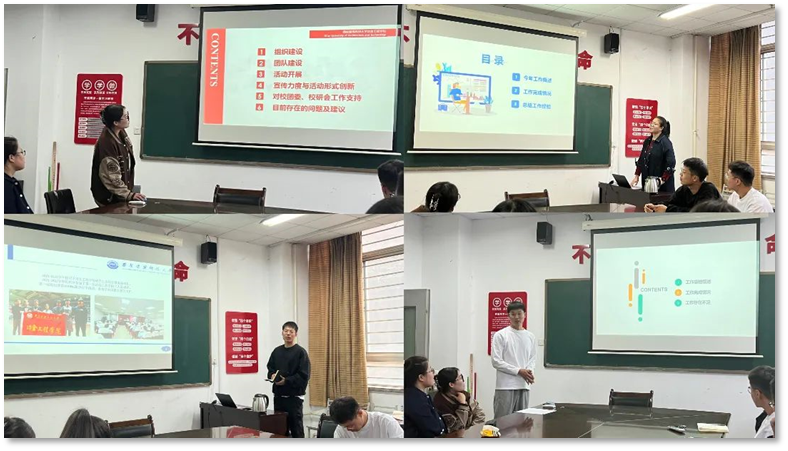研究生会通过干部述职大会、年度工作计划、阶段性汇报总结等模式及时总结工作经验、优化工作模式。同时也不断汲取借鉴,推陈出新,借鉴校研会与其他优秀研会工作经验,实行时长统计考核机制,每月定期公布工作时长,督促成员时刻以饱满精神风貌投入工作。