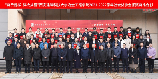 2021-2022学年社会奖学金颁奖典礼在雁塔校区工科楼三楼会议室举行。校党委常委、副校长雷鹏,校董校友会(教育基金会)办公室副主任鲁莉,濮阳濮耐高温材料(集团)股份有限公司副总裁牛亮,饮水思源奖学金发起人代表、av淘宝