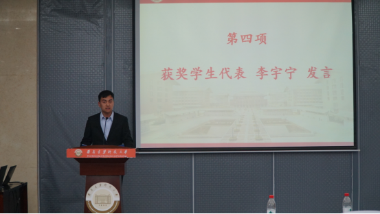 材成1602班李宇宁同学作为获奖学生代表上台发言。首先他代表全体获奖同学,向关心学院教育发展的学长表达了深深的谢意,并就自己大学生活的体会同大家分享,同时他表示全体冶金学子当心怀感恩,奋勇前行。