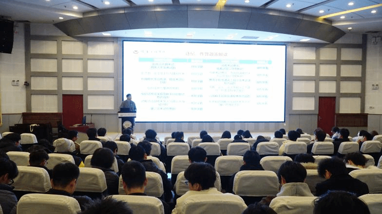于12月3日在雁塔校区工科楼一楼报告厅召开2023级本科生年级大会,大会以“冶金赋能・双路启航”为主题,围绕就业规划与考研备考展开讲解。会议由23级辅导员岳家新主持,邀请尚研考研吴妮、新东方刘宇杰、好胜教育廖虎三位资深讲师作专题分享,23级全体本科生参与本次大会。