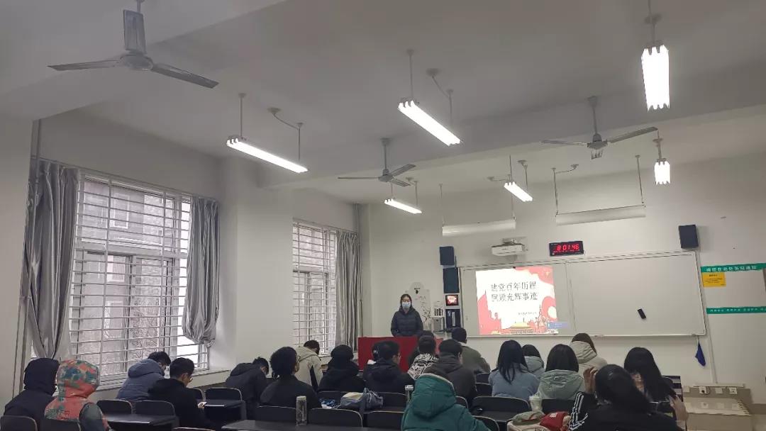 新能源2102班于学府城16栋208教室开展“建党百年历程,回顾光辉事迹”主题团日活动。本次活动由新能源2102班团支书刘文玉主持,新能源2102班全体同学参与本次活动。