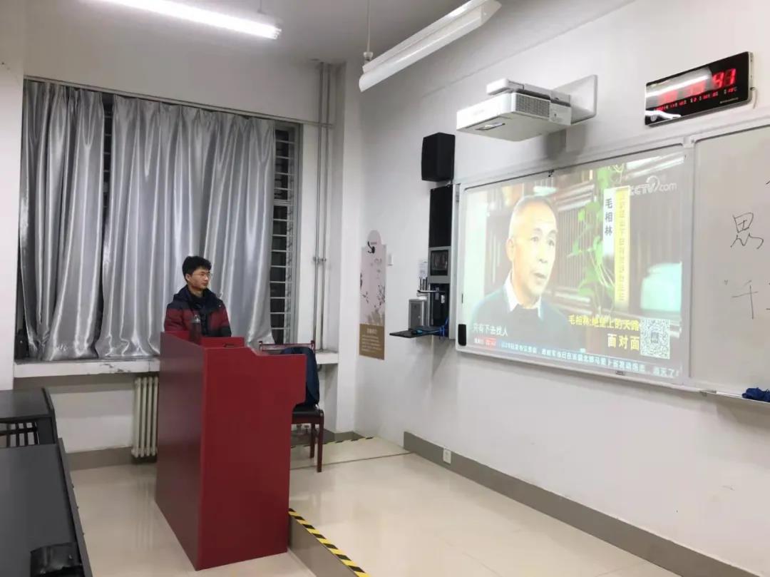 活动伊始,主持人向同学们介绍了地处山区腹地、被称作“天坑”的下庄村,村中一半的村民都没有走出过大山。村支书毛相林为了下一代下庄人不再受苦,决定在绝壁上修路,实现下庄人共同的希望。接下来,主持人播放三段视频。