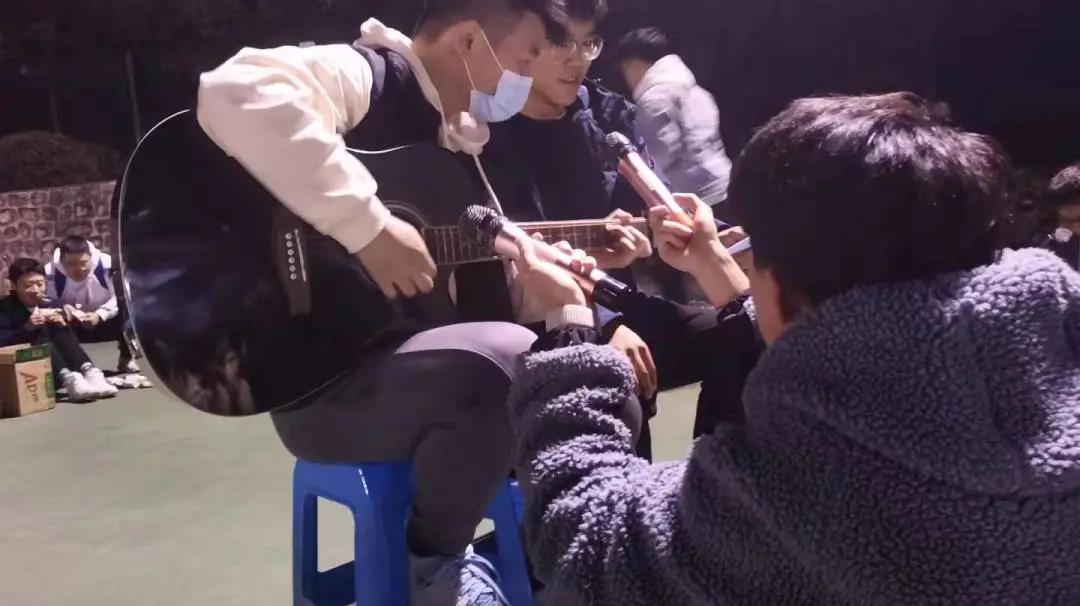 活动开始,金属2102班罗昊为同学们演唱歌曲《情非得已》。