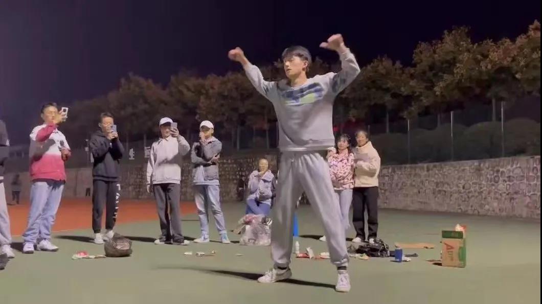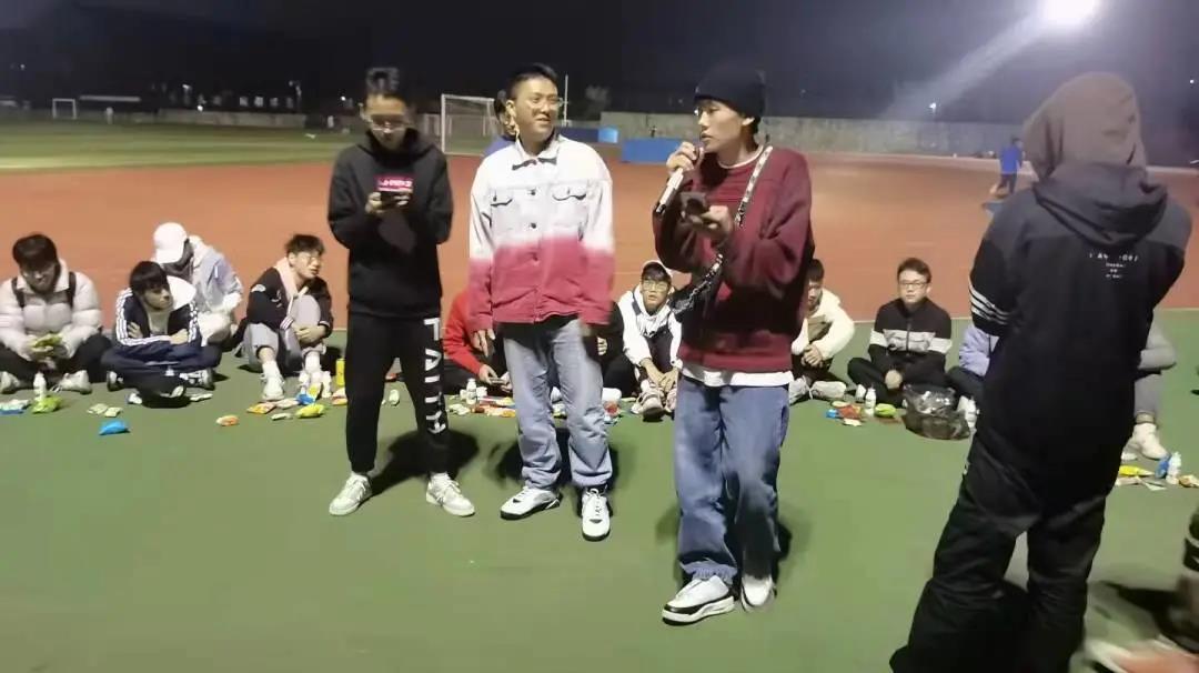 在音乐的伴随下,道具花在同学们手中依次传递,激动人心。被惩罚者金属2102班唐志远、金属2103班王文博按照游戏规则,接受惩罚,进行了相应的才艺表演。游戏结束后,金属2102班孙佳豪表演舞蹈《屋顶着火》。