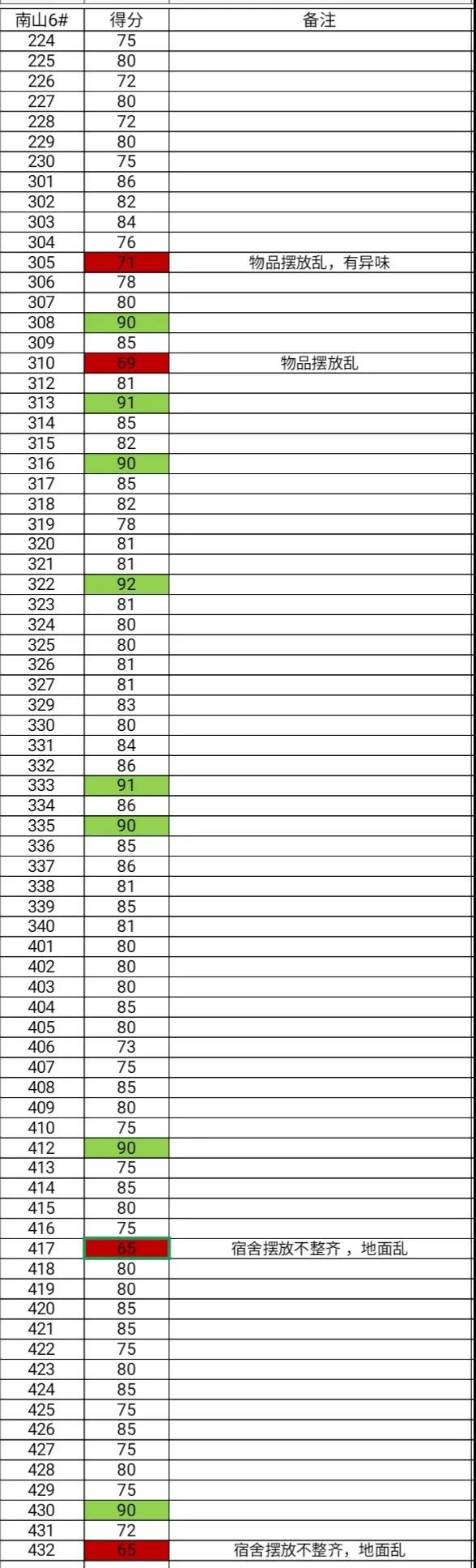 冶闻在线 | av淘宝 第九周宿舍卫生检查结果公示