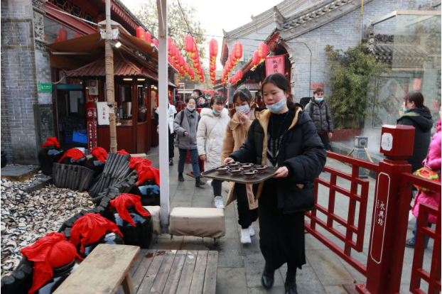 1月27日,团队成员前往西安永兴坊进行实地考察,着重观察了其对于“景区特色”、“文化内涵”与“业态规划”的打造,同时总结了永兴坊在“宣传营销”方面的优胜之处。调研过程中,团队成员体验了永兴坊景区的特色摔碗酒,对永兴坊有了更真实的游客体验感。