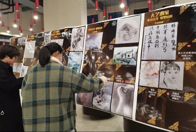 此次活动开始前安排了艺术展作品投票环节,前来参加晚会的同学们拿着手上的投票贴纸,踱步于礼堂大厅的展览,从展出的几十余件精美的艺术作品中细细挑选出最心仪的那一件,再将手中的贴纸贴到对应的投票区域。