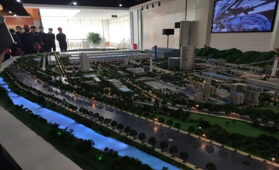 紧接着,小队在讲解员的带领下参观了汉钢公司的展览馆。刚进入展览馆,映入眼帘的是一个汉钢公司厂区的微缩模型,从中可以清晰直观地看到整个厂区的布置,通过讲解员的认真讲解也从中体会到汉钢公司的恢弘气势。