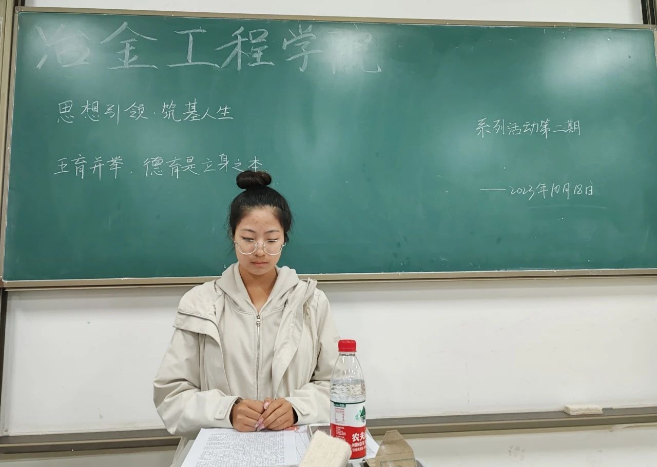 活动第二部分,冶金青年学子通过主持人的讲述,深入了解“望前路,零落成泥碾作尘,只有香如故;回首望,桃李春风满天下,初心仍不改”的张桂梅校长的事迹。张桂梅校长十年如一日耕耘在三尺讲台之上,将一个又一个学生送出大山、给一个又一个家庭带来希望。她的事迹塑造出一名共产党员的时代楷模形象,是时代德育之模范。我们冶金学子应学习张桂梅精神,将德之精神深化于心、努力学习、刻苦钻研。勿以事小而不为,奉献自己的一份力量。