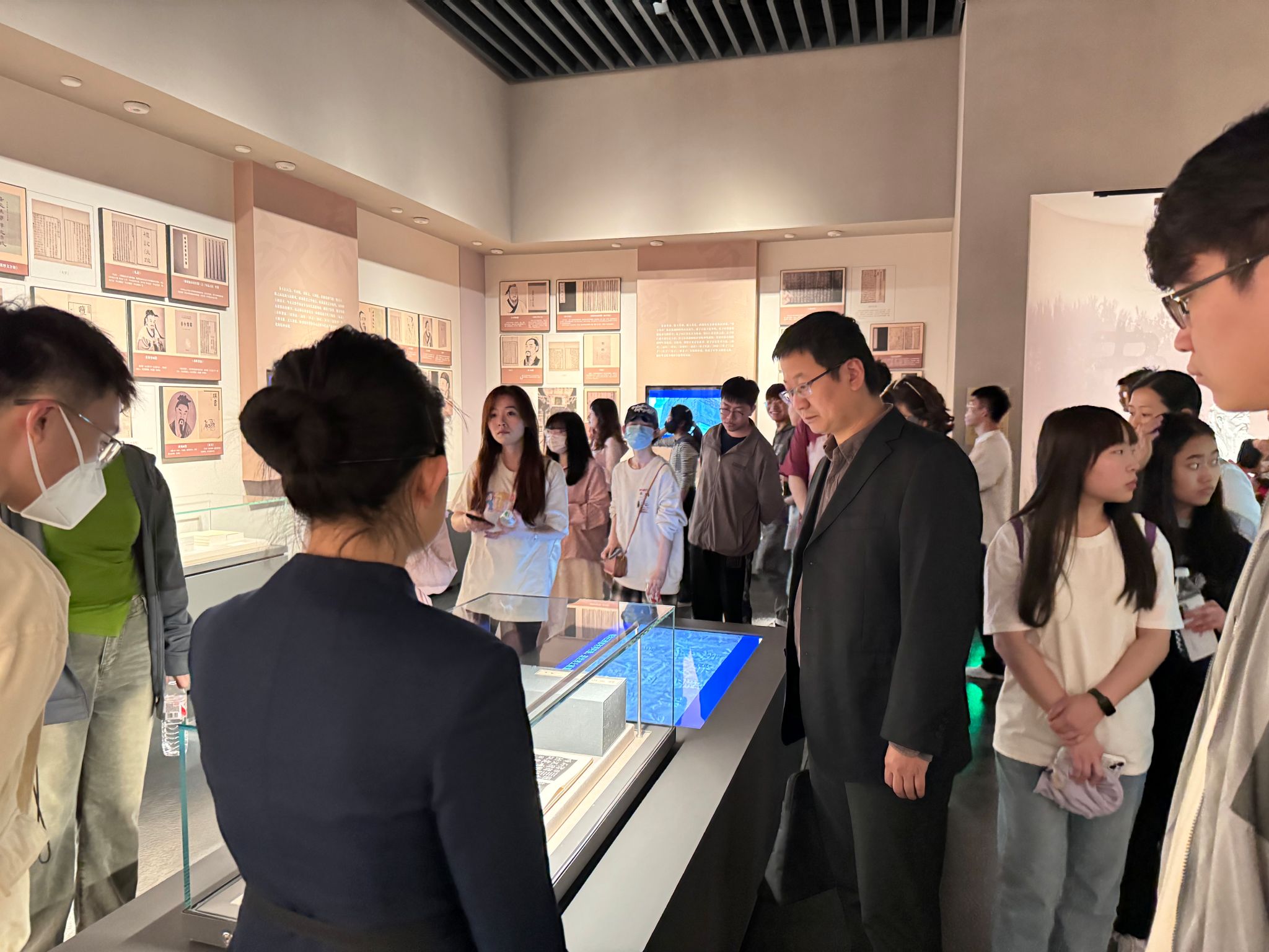 全体人员跟随讲解人员走进版本馆核心功能区保藏中心的文济厅,文济厅是中国国家版本馆西安分馆最大的单体建筑空间,这里集中陈列着5万余册精品图书版本。全体人员还参观了以丝绸之路文化为主题的《楮墨遗珍万里同风——丝绸之路版本展》以及《赓续文脉踔厉前行——中华文化经典版本展(西部篇)》,两个常设展览独具特色,各类展品充分展现丝绸之路文明、中华文化的深厚底蕴。