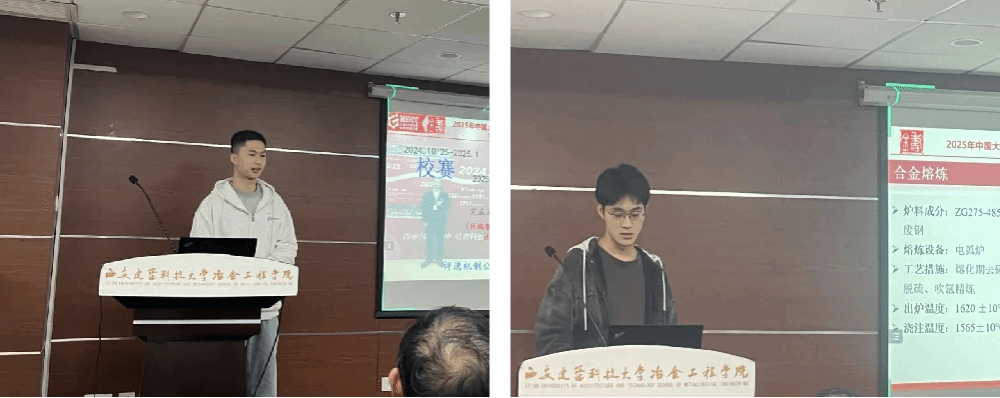 10月29日在草堂校区学府城9-104教室和雁塔校区工科楼1111报告厅顺利举办“学长领航”经验分享主题会议,会议邀请了2024中国大学生铸造工艺设计赛一等奖获得者,金属2101沈振生、金属2101李相时作经验分享交流。