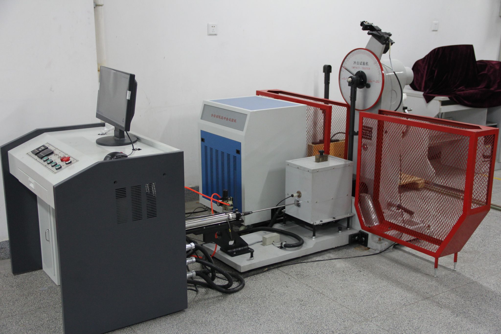 JBDW-300Y型微机屏显全自动低温冲击试验机用于测定金属材料在低温状态下抵抗动负荷冲击的性能。试验机的扬摆、挂摆、送料、定位、冲击及温度调节均为电气、机械控制,操作简便、工作效率高。冲击试验机按照国家标准GB/T3808-2002“摆锤式冲击试验机的检验”和GB/T229-2007“金属材料夏比摆锤冲击试验方法”设计制造及检验。冲击能力为300J和150J,试验温度为0~-60℃。